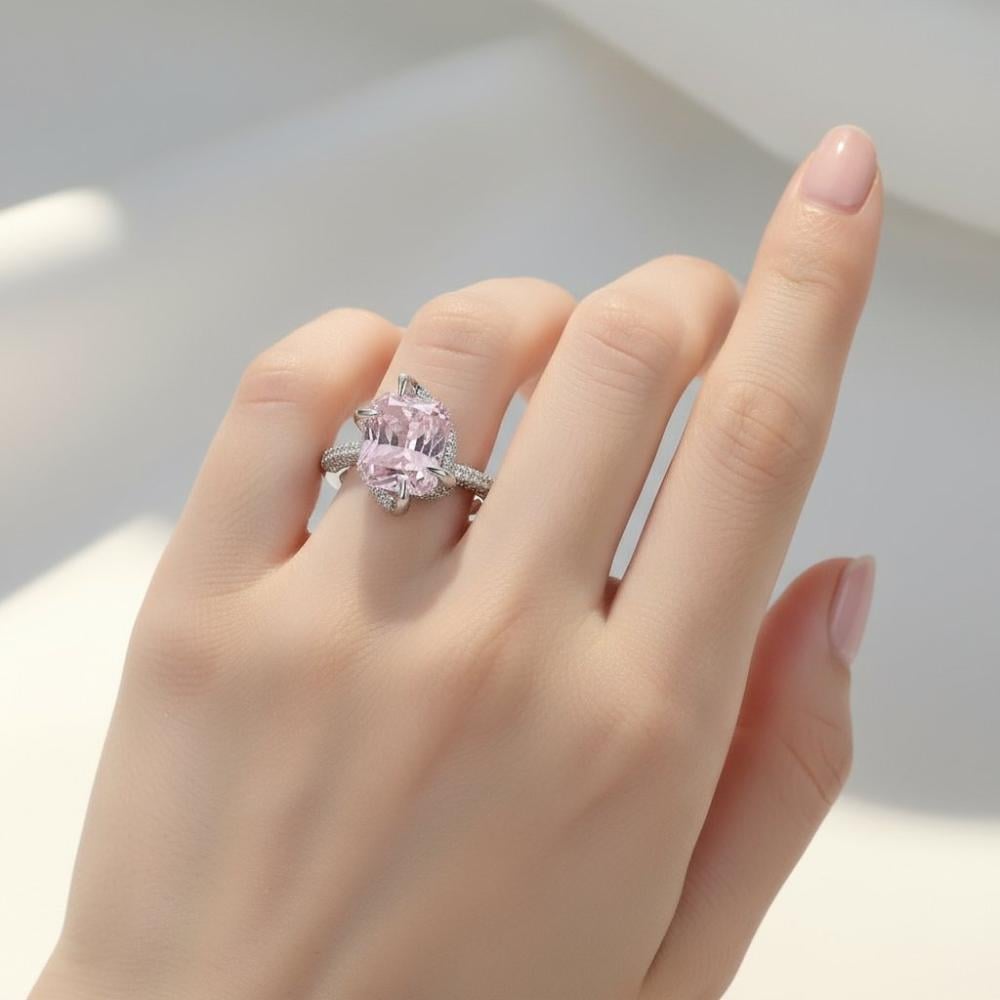 صُمم هذا الخاتم ليجمع بين الأنوثة والرقي في قطعة واحدة. التقطيع الإميرالد يمنح الحجر حضورًا ملكيًا، بينما تضيف التفاصيل الجانبية بريقًا هادئًا يكمّل أناقتك.