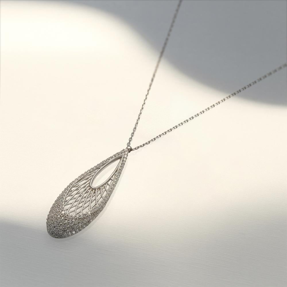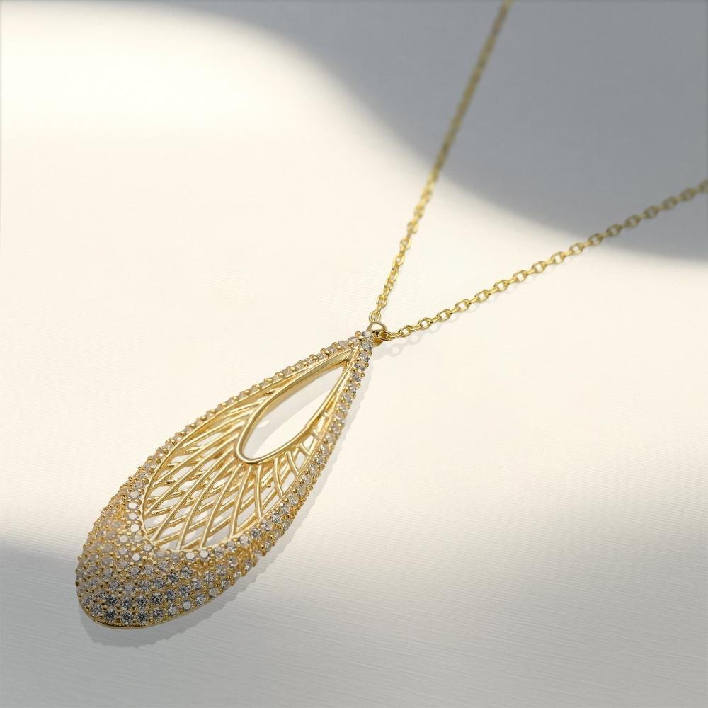 التعليقة: قطرة طويلة مفرغة بنمط زخرفي شبكي أنيق.